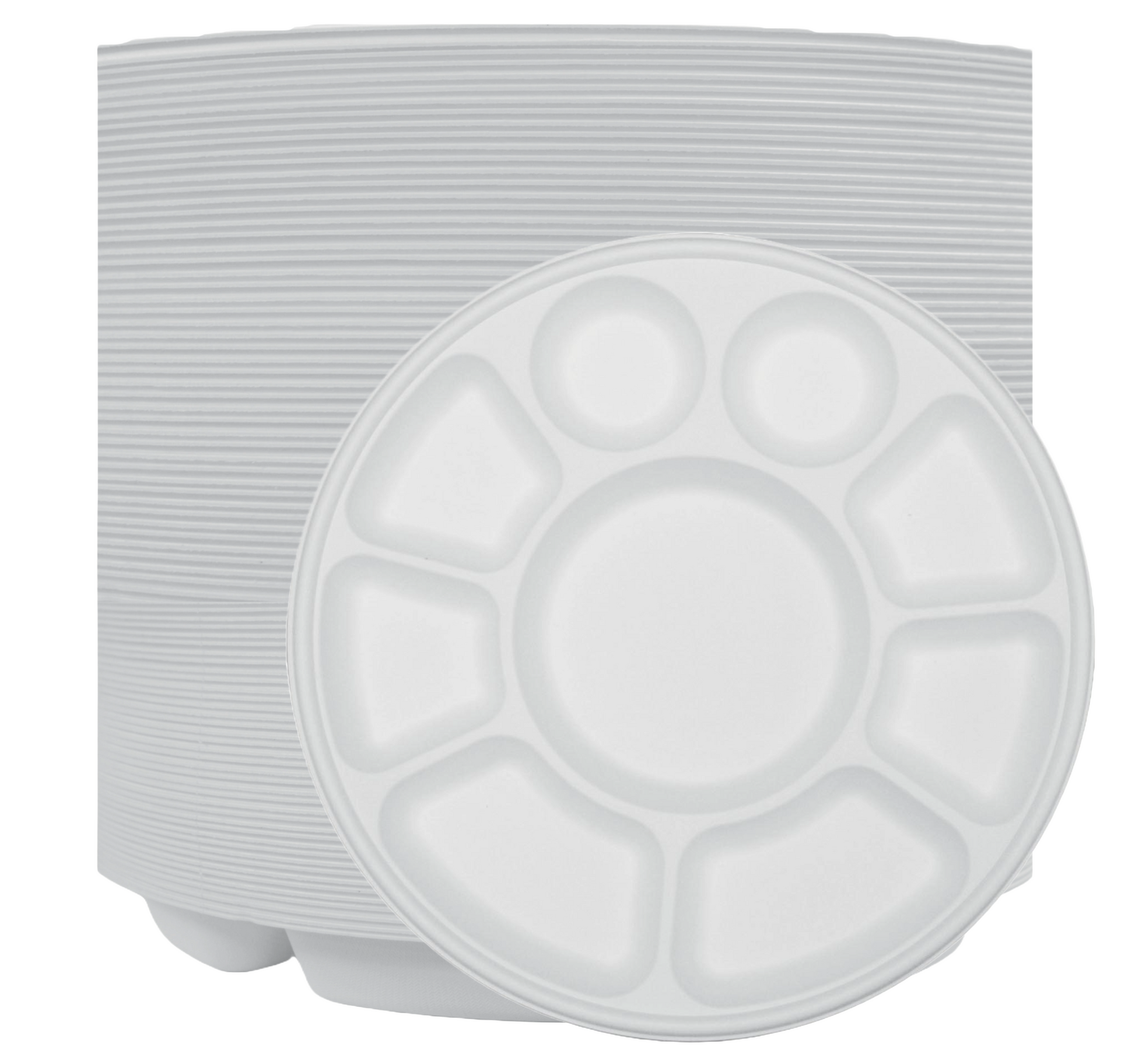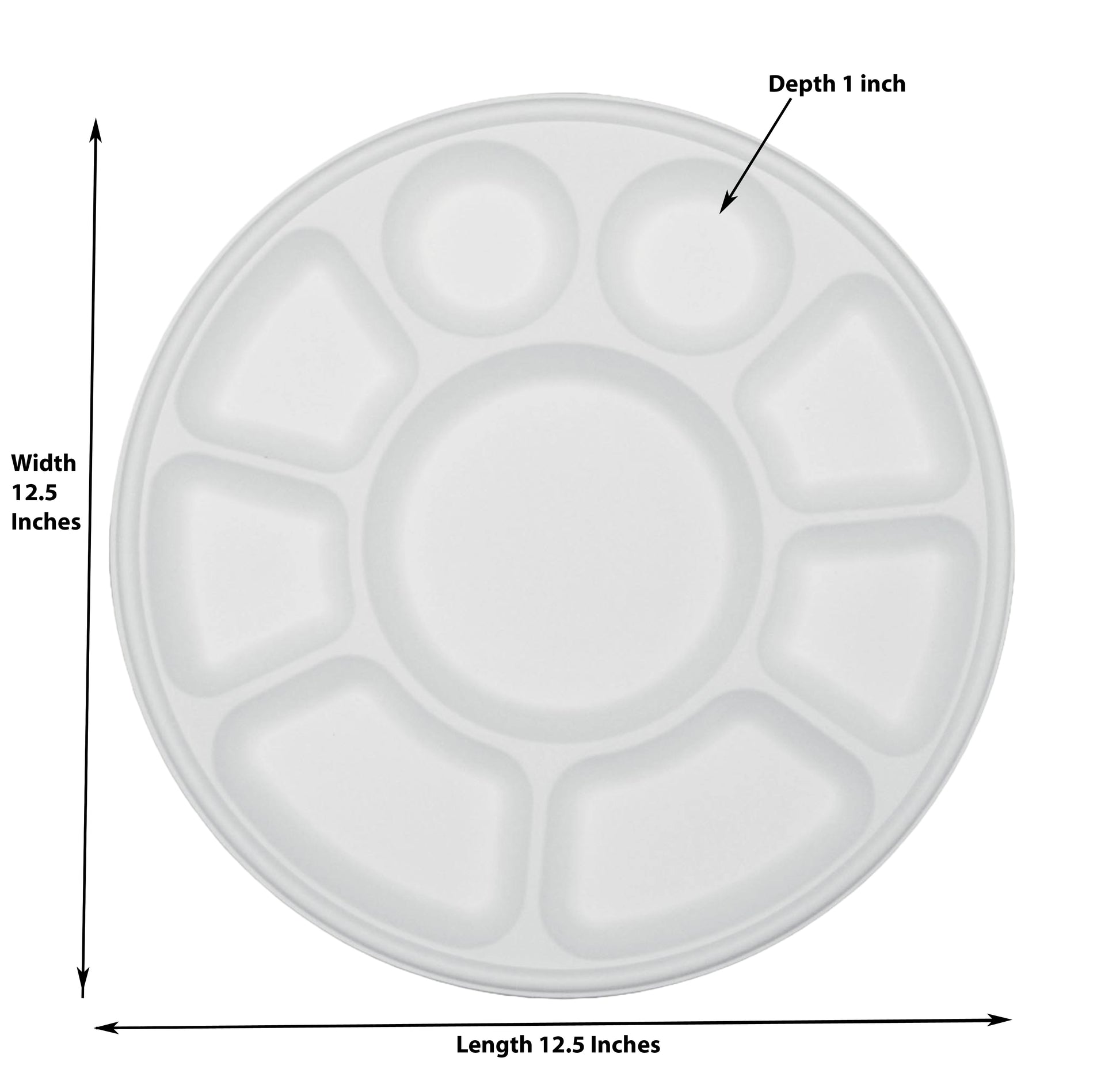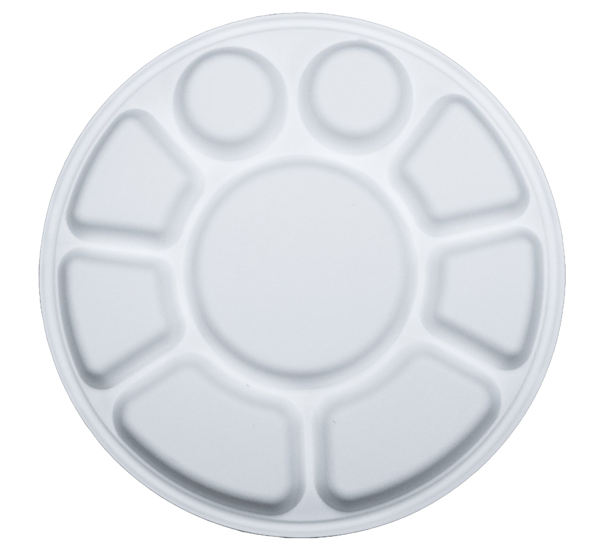 - These Thali (plates) are made from sugarcane pulp and fiber, making them an Eco-friendly alternative to traditional party thali, plastic or paper plates. The plates have 9 separate compartments, making them ideal for serving multiple food items without the risk of mixing them up.